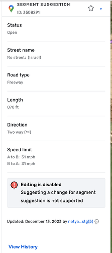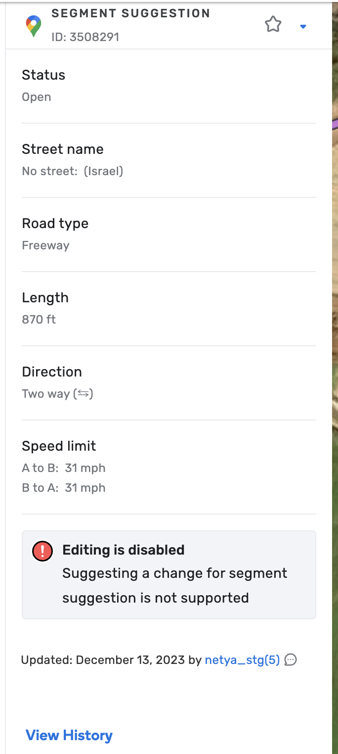 Designed to allow editors to suggest edits on WME when map attributes are locked due to lack of permissions, instead of asking for a Map Unlock. This will enable those editors to improve the accuracy and completeness of the map, and contribute to the overall quality of the map.