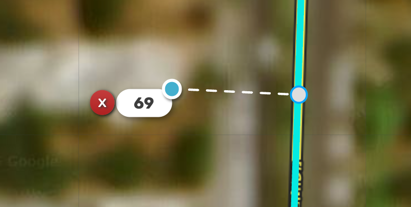 - If you need to reposition a house number on a segment, drag the point to the new location. A dotted line will indicate the suggested new location on the map; this line is only visible when you hover over the suggestion card.