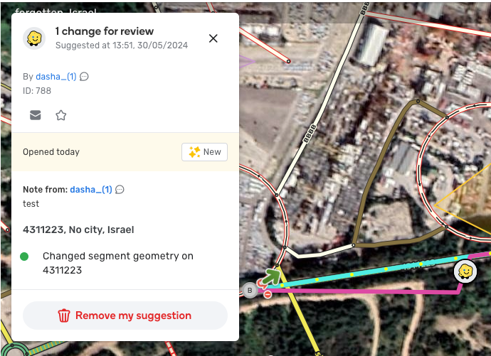 - Segments with pending HN suggestions will be visually highlighted with an indicator and a tooltip on the map.