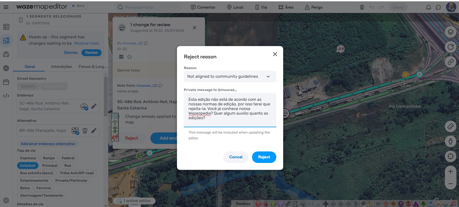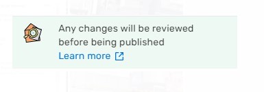 Editor também receberá esses dois avisos dizendo que a edição será moderada antes de ir para o mapa