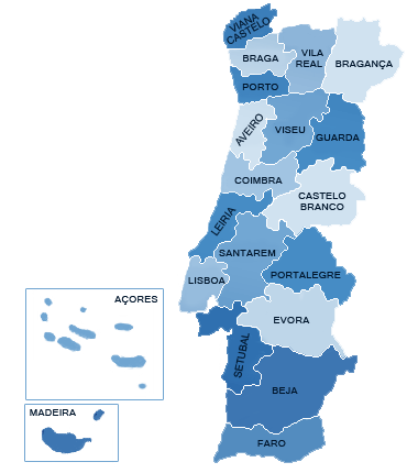 Clique na imagem para ver os concelhos de cada distrito.