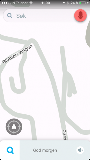 Husk at satelittbildet ikke er virkeligheten. Det kan godt være at bildet er litt forskjøvet i forhold til riktig posisjon, slik at veiene vi tegner basert på bildet ikke er helt nøyaktig i forhold til posisjonene i virkeligheten. Waze velger da å vise din posisjon på den veien som ligger nærmest.