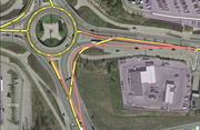 Vahva tämä. Simppelitkin ympyrät menee ihan typeräksi liittymien laskemiseksi, jos pitää alkaa tuplailemaan kaistoja. Ympyrän kääntymisopasteisiin pitää saada tuplauksista riippumaton heuristiikka tai käsin pakotus.