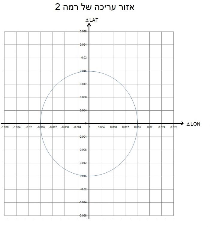 בכל נקודה בתוך אזור העריכה שנוצר מסביב לנקודה במסלול הנסיעה מתקיים שהפרש ה- LAT בריבוע ועוד הפרש ה- LON בריבוע קטן ממגבלת ההפרש הזוויתי בריבוע, כאשר ההפרש הזוויתי תלוי ברמת העריכה כמוגדר בטבלה.