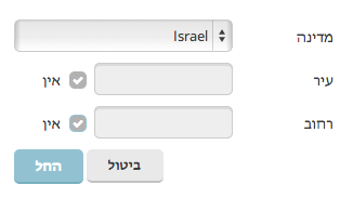 - על מנת ליצור או לערוך סגמנטים ללא שם או פרטי עיר המיוחסים אליהם אנו מוכרחים לסמן את האפשרות ׳אין׳ בשדות ׳עיר׳ ו/או-׳שם רחוב׳ (תלוי באיזה נתון חסר) בחלקו העליון של לוח העריכה המתייחס לכתובת הסגמנט, נוכל לראות את פרטי הכתובת של סגמנט על ידי לחיצה על הכפתור