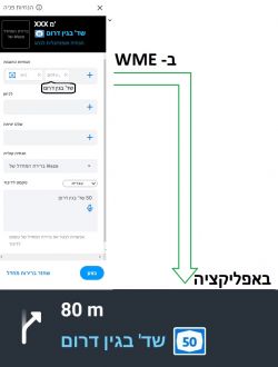 - כאשר שם הרחוב אליו פונים הוא שם של יישוב וזה עלול לבלבל (כלומר עלול להתפרש כהנחייה להגיע ליישוב), ניתן להוסיף בהנחיית הפנייה לפני שם הרחוב את הקידומת המתאימה רח’/שד’/דרך. יש להדגיש שזה רק במקרים מיוחדים שבהם יש מקום לטעות ניווט ולא בכל מקרה ששם הרחוב הוא שם יישוב.