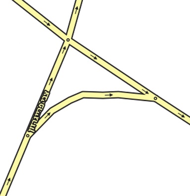- אם המקטע הוא מסוג כביש מהיר או מחבר, אזי תמיד נלקח השם הראשון של מקטע בהמשך המסלול המתוכנן. אחרת אם הסוג הוא דרך עפר, רחוב, רחוב ראשי, בין עירוני משני/ראשי, אזי תהיה הורשה של השם הבא למעט כאשר מתקיים אחד התנאים: