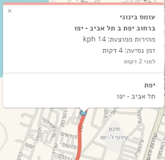 ייפתח תפריט גלילה אשר בו ניתן לבחור את שעת היציאה הרצויה ברזולוציה של חצי שעה. לאחר הבחירה בשעה הרצויה, יוצגו המסלולים המומלצים עם נתוני הזמנים בהתחשב בעומסים הממוצעים הידועים מתוך הסטטיסטיקה שנאספה עבור השעה שנבחרה.