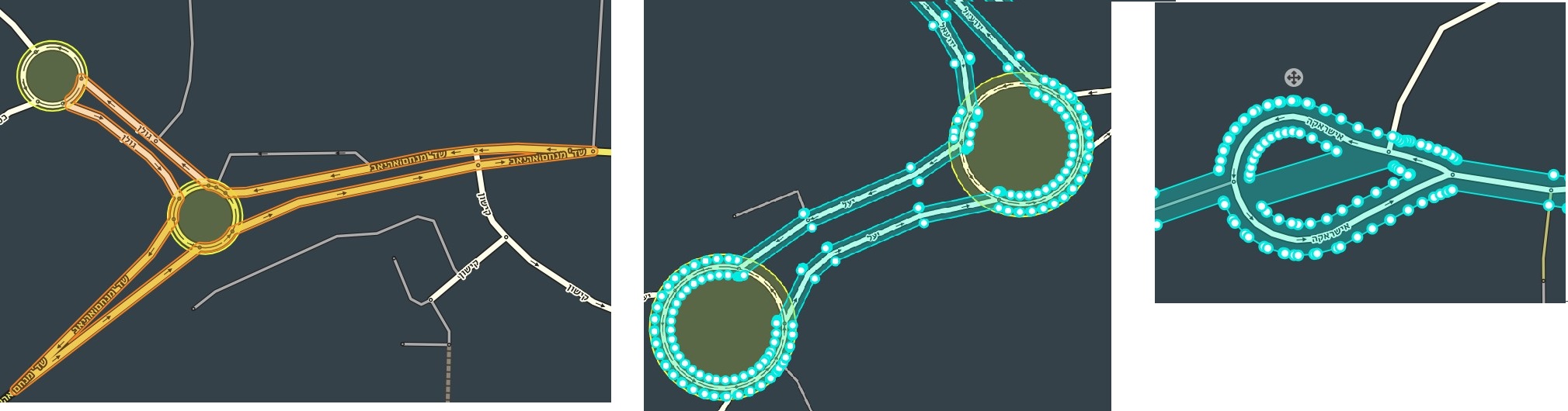 - יש בין שני “צמתי כניסה” רק פס האטה אחד (שעומד בתנאי להכנסת הסכנה לעיל), אזי ניתן להכניס סכנה דו כיוונית במקום שתי סכנות חד כיווניות.
