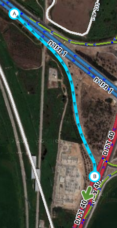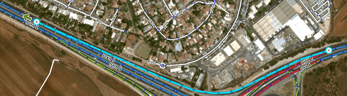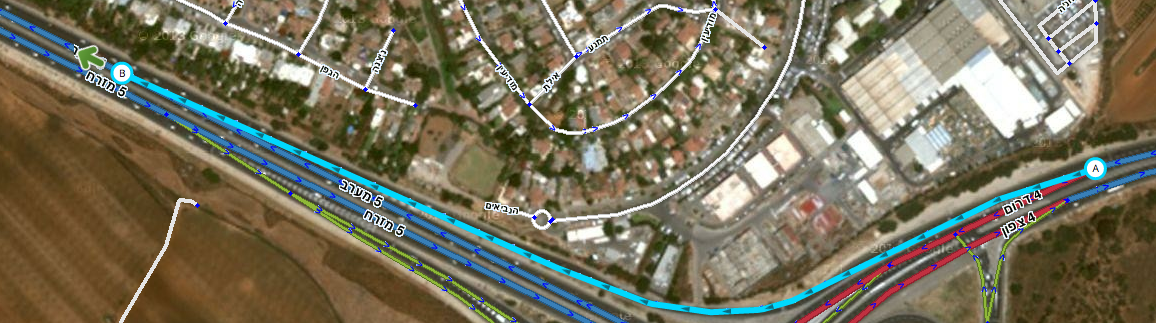 - התוואי של המקטעים מתאים לתוואי של מרכז כל אחד מהכיוונים (ניתן להשתמש בשכבת נקודות GPS ומסלולי נסיעות וכן בתצ"א כאשר ניתן לקזז את ההסטה הקיימת בו)