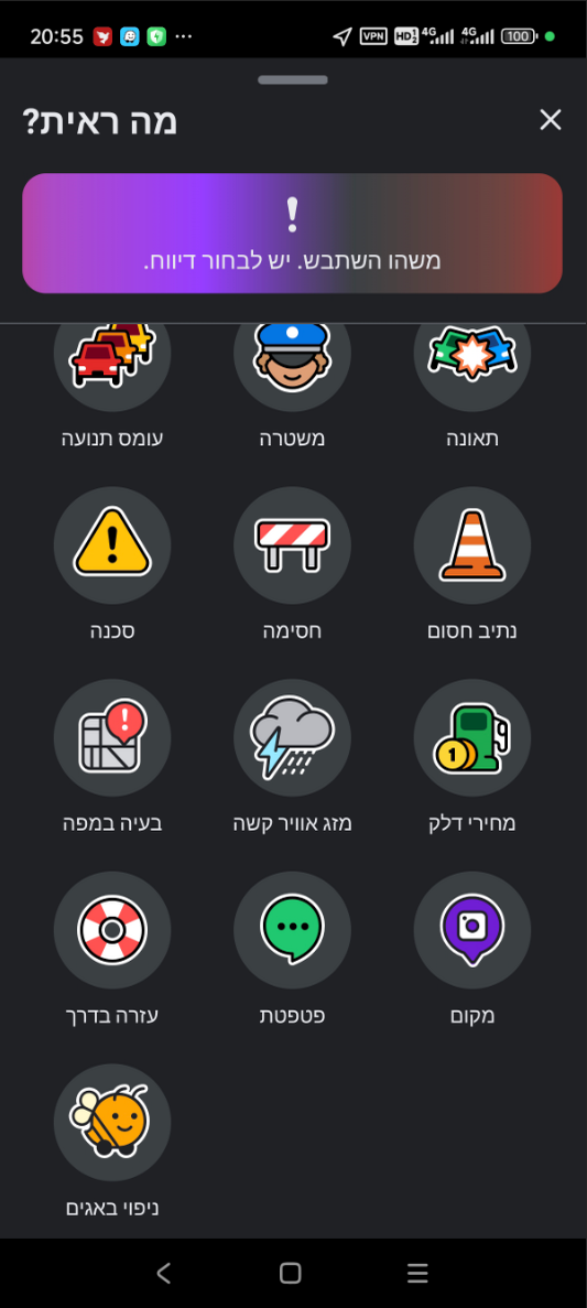 התקנתי מחדש אפליקציה אם מחיקה מלאה קודם. עכשיו כמו אצלך מופיע כל הזמן. לא חושב שזה היה באג. אולי איזה משהו ניסיוני שבמקרה עליתי עליו. בגרסאות בטא הכל יכול להיות… יהיה טוב אם פיצ’ר זה יעבוד בהמשך. במקרים של חסימות חלקיות, במיוחד בכבישים מהירים זה יעזור מאוד.