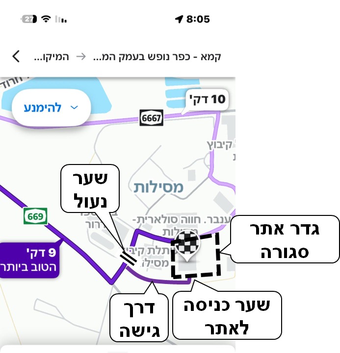 הקואורדינטות של שער הכניסה: (32.4915575, 35.4754426)