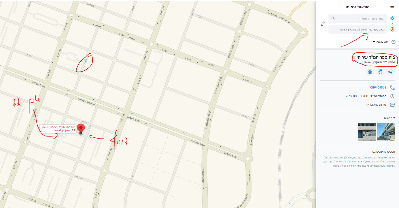 במקביל אשמח שחיפוש בוויז “בית ספר גפן” יוביל לשאנין 22 אשקלון.