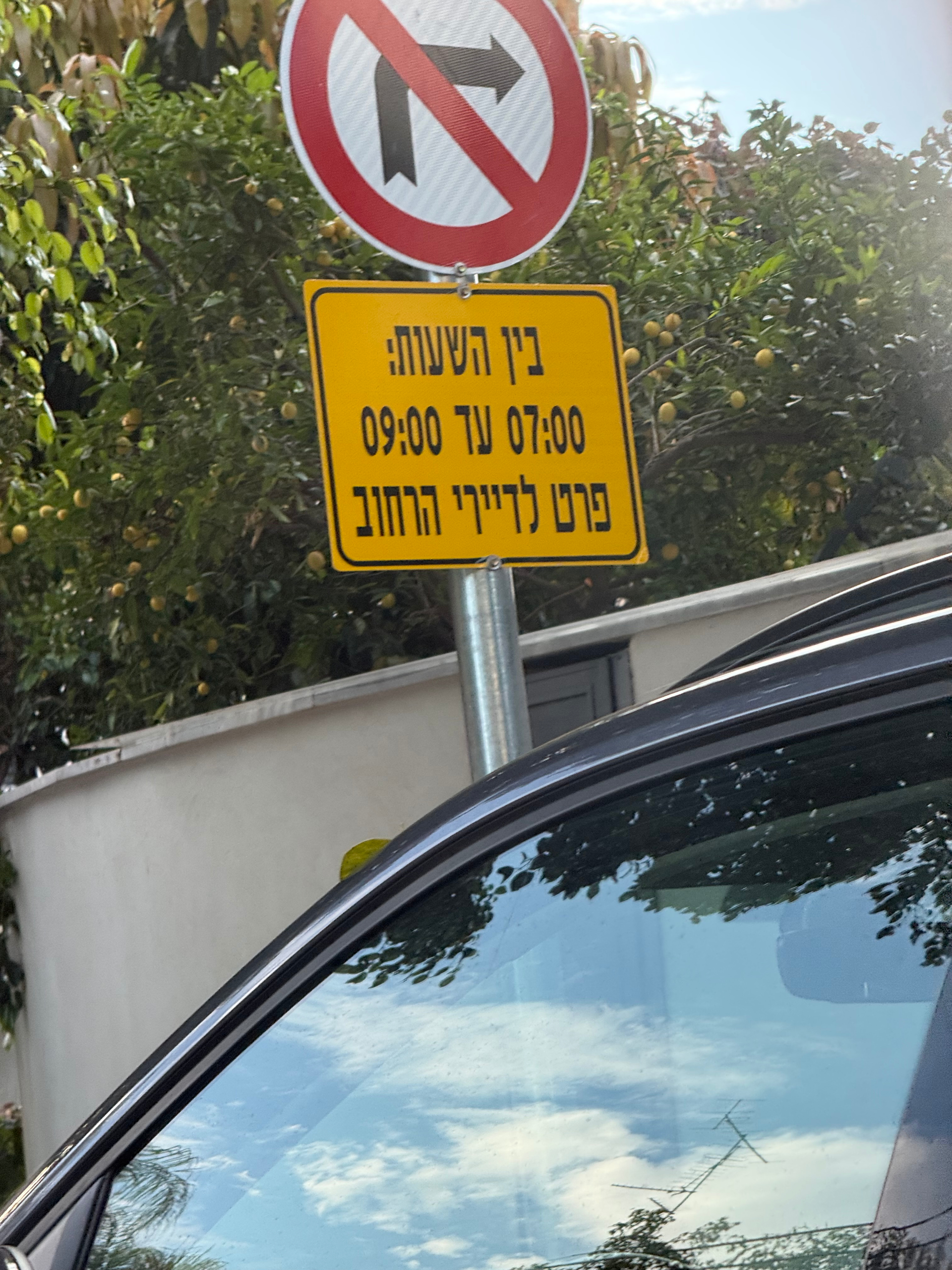 ברחוב הסלע מכיוון זורבבל, ברמת השרון, יש שלט חדש האוסר על נסיעה בין 7-9 בבוקר למעט לדיירי הרחוב.