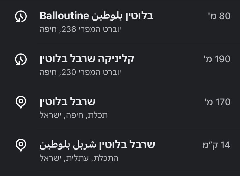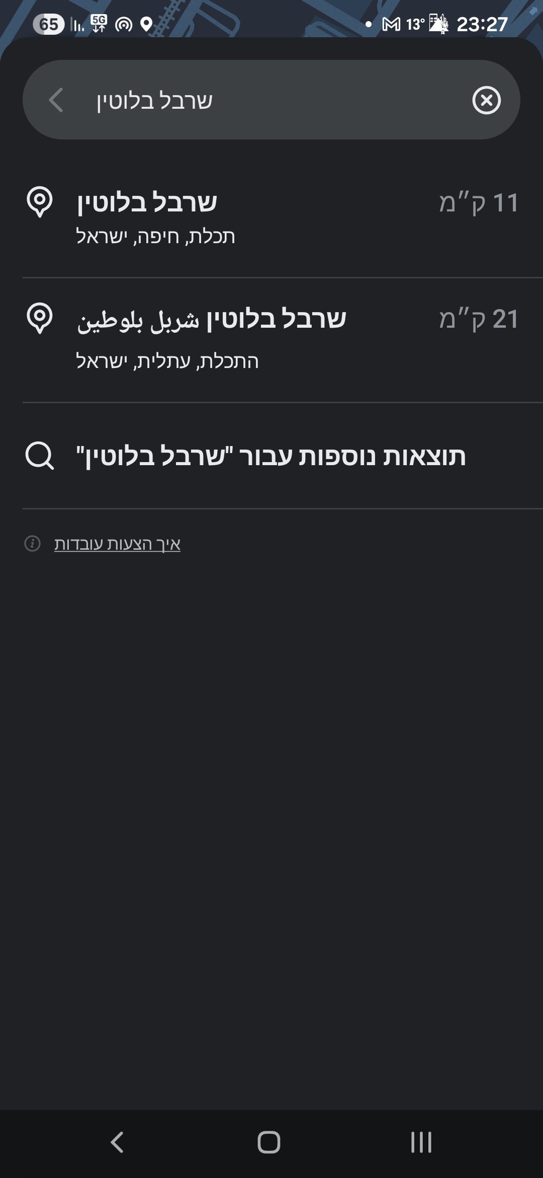 - כאשר אני מקליד “שרבל בלוטין”, אני מקבל אמנם את רח’ התכלת בחיפה, אך בלחיצה נוספת את יוברט המפרי
