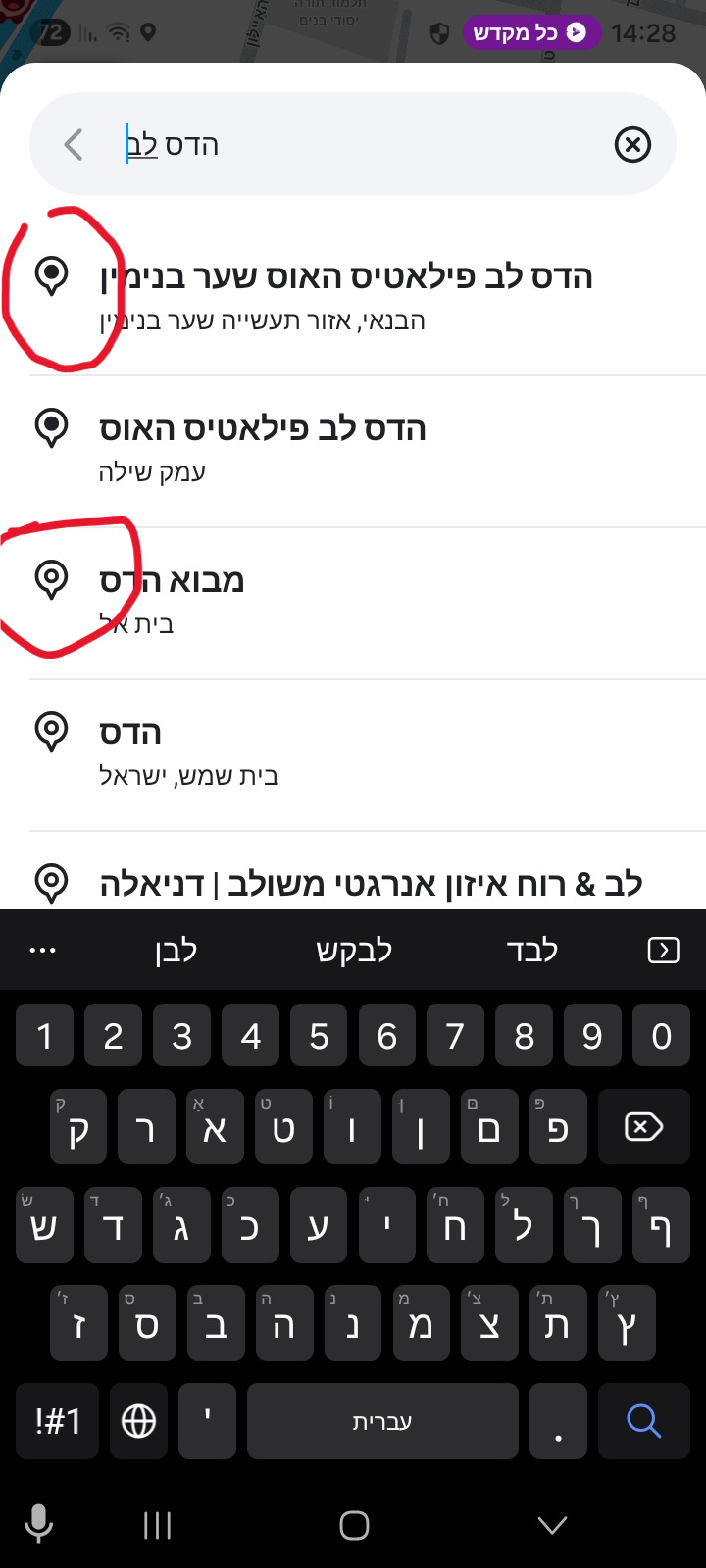 עם הנקודה במרכז זה תוצאה של ווייז ובלי זה של גוגל.
