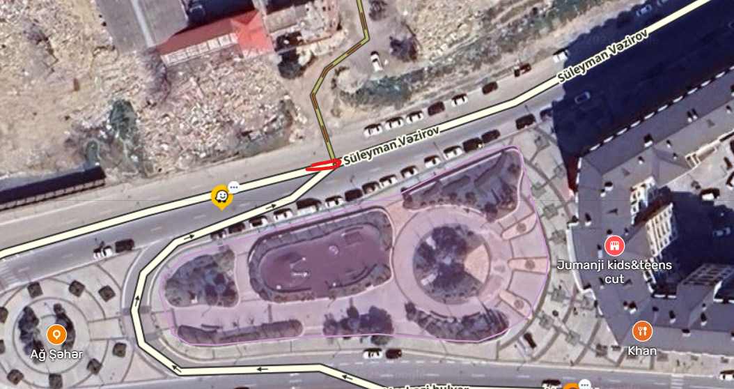 В Белом городе ул. Сулеймана Везирова от круга до проспекта Бабек везде идет сплошная линия. Там нигде разворотов нет. В месте указанном на карте разворота нет ни в одном направлении.