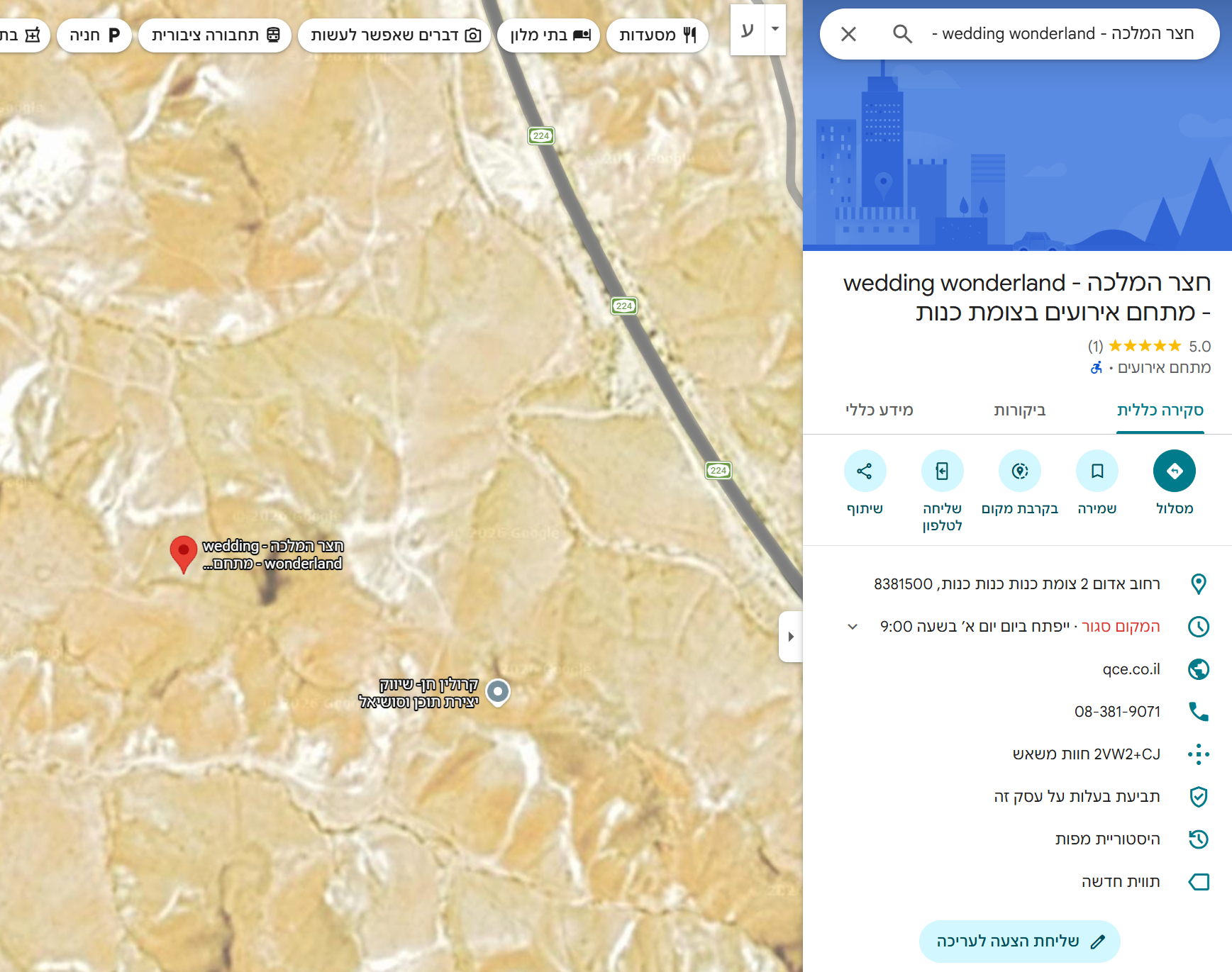 מופיע בגוגל כ- חצר המלכה - wedding wonderland - מתחם אירועים בצומת כנות