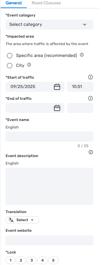 As an alternative to submitting in WME, a traffic event can be submitted to waze-closures@google.com with the following details: