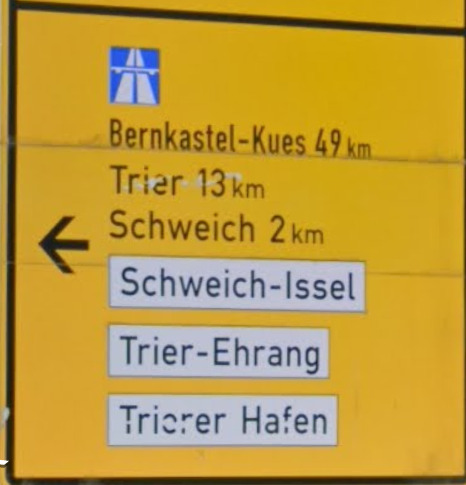 Im Falle das Autobahnschilder vorhanden sind, gelten diese als ein Richtungsziel. In solchen Fällen sind damit bis zu 3 Richtungsangaben erlaubt Beispiel: A62 / A6 & Ziel 1 / Ziel 2