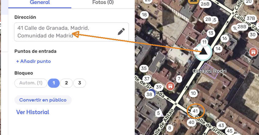 Buenas, he estado mirando un UR donde me decían que al ir a Granada 41 le enviaban a la calle Abtao (perpendicular). No es de rutado, porque si buscas G41 en el WME te pone la chincheta en Abtao. ¿Alguna idea? La flecha de Granada 41 me queda un poco fuera, pero más menos.