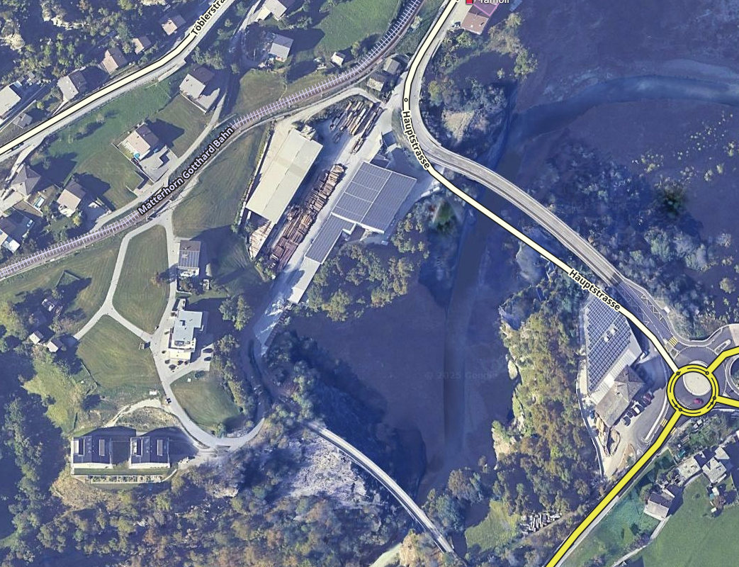 In Waze fehlt bisher die untere Merjenstrasse in Stalden, VS. Aktuelle Karte in Waze: