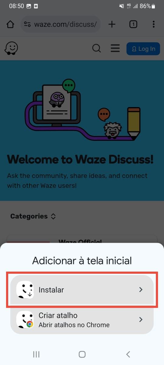 - Abra o fórum no navegador do seu celular usando o link https://www.waze.com/discuss (Chrome recomendado).