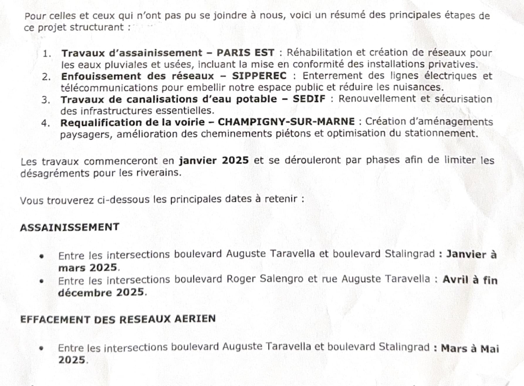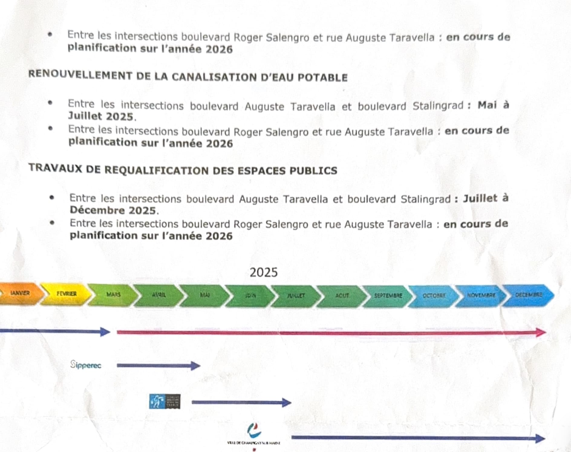 - Raison : Fermeture du boulevard Aristide Briand, Champigny-sur-Marne entre les intersections bld Auguste Taravella et bld Stalingrad de janvier à mars 2025 (Actuellement de l’intersection Auguste Taravella à la rue Jules Ferry, des personnes le signale tous les jours).
