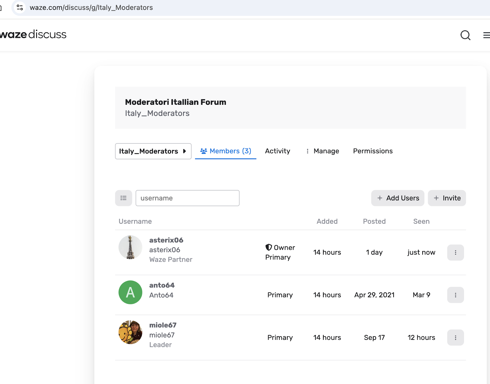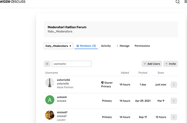 - Add Users - to add users who are already on Waze Discuss directly to the group.