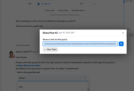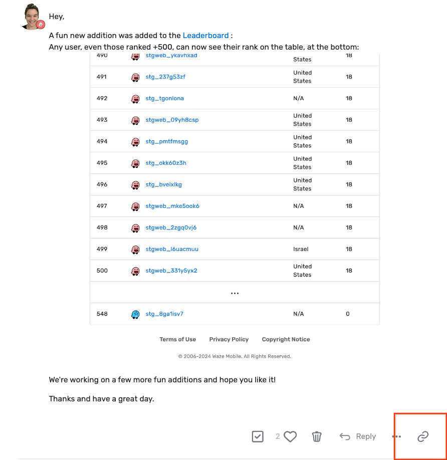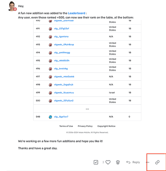 However, Waze has disabled Discourse’s DMs, to make way for Waze chat, so the access to these messages isn’t straightforward and we generally don’t encourage their use.