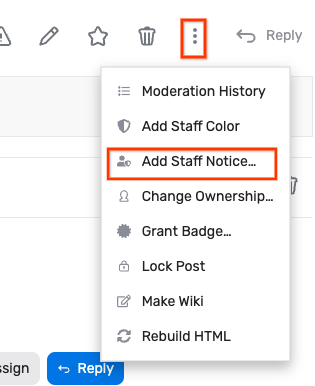 The eng team installed the “Assigned” plugin so that topics can be assigned to team members, but we can use it to assign topics to community moderators too, if we’d like.