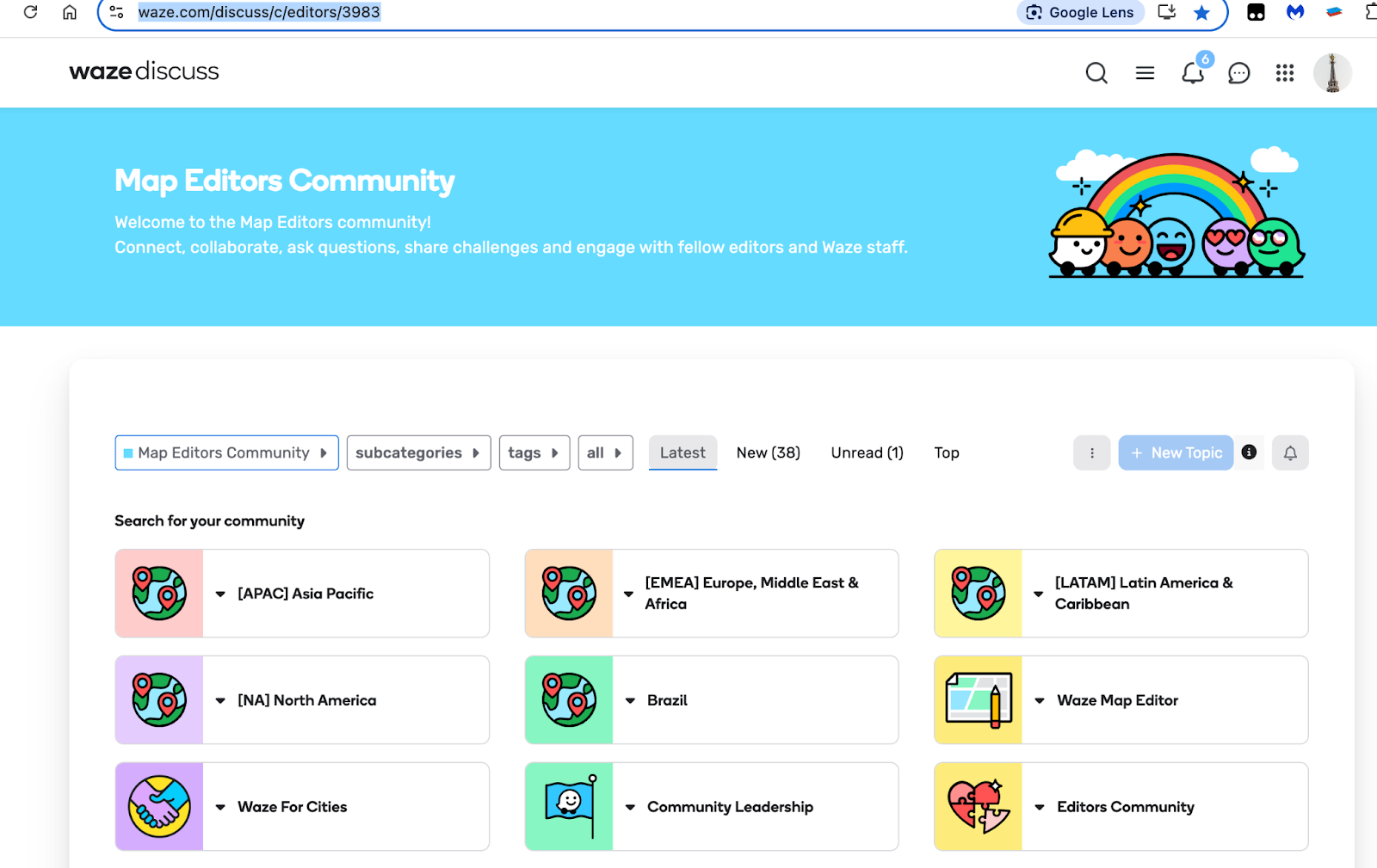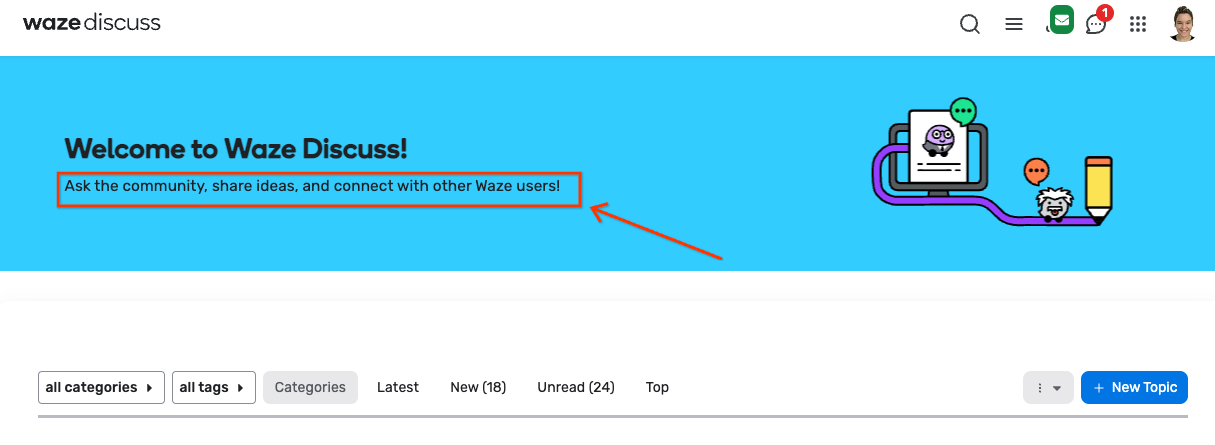 Access the main page on Waze Discuss: https://www.waze.com/discuss/