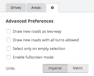 - Draw new roads as two-way - determines whether any new road segments you draw start as two-way or one-way