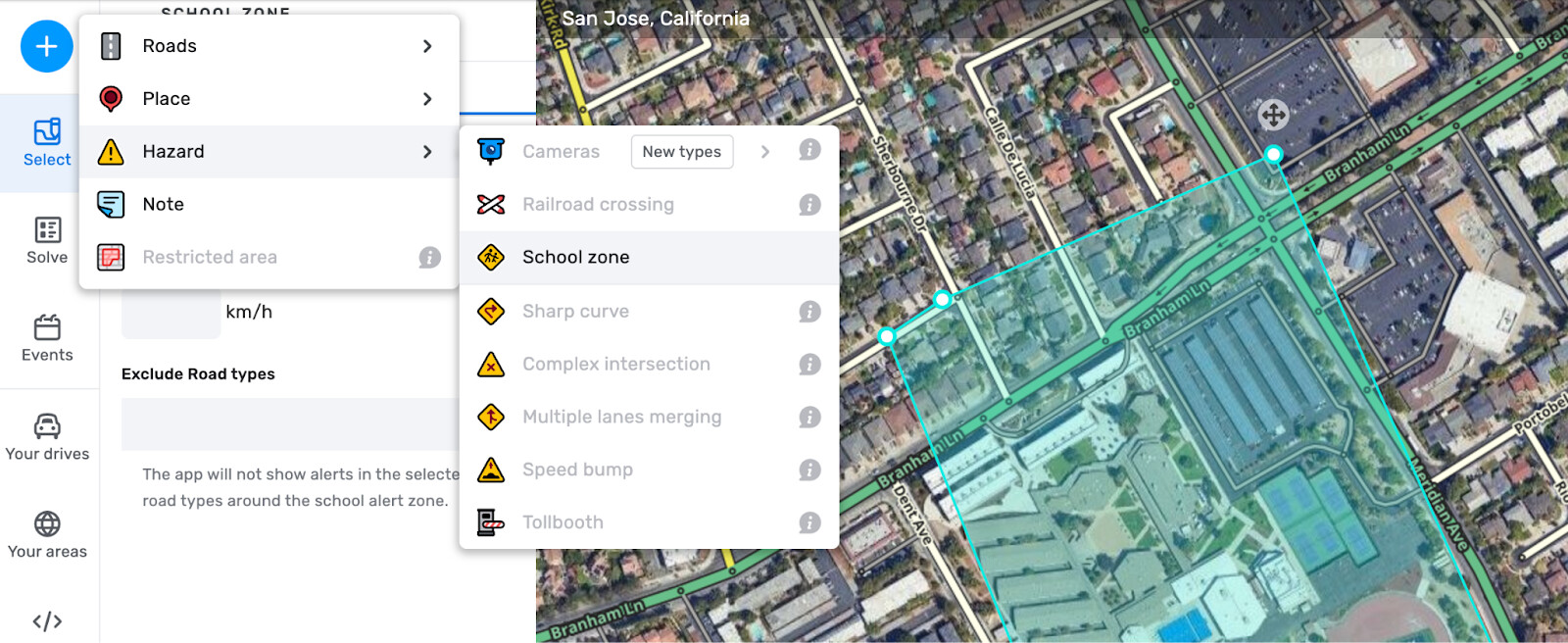 スクールゾーンは、編集者がWME上でこれらのエリアをポリゴンとして直接マッピングできる機能です。これらのゾーンは、ドライバーに警告を発し、学校周辺で注意深く運転するように促します。
