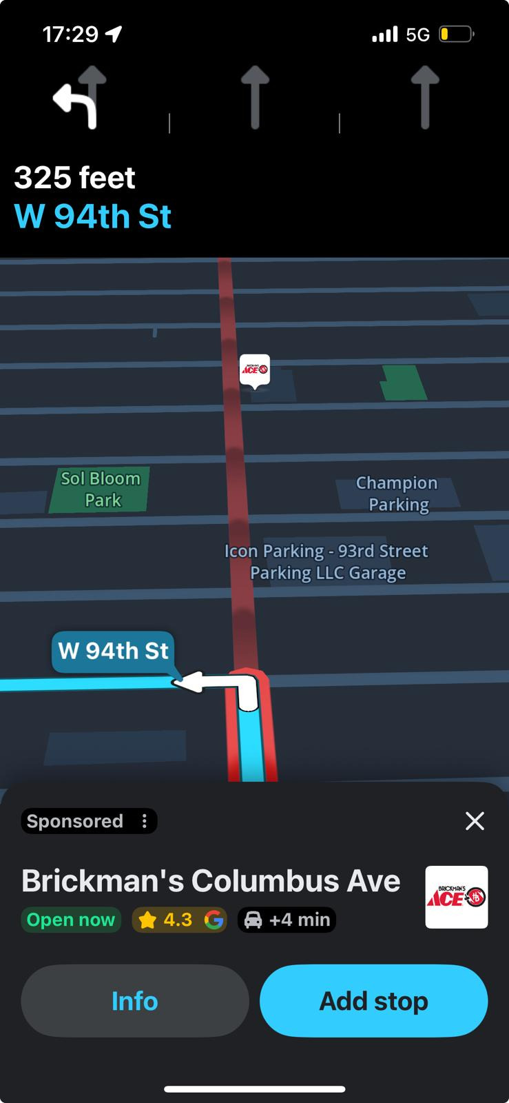 סיכות פרסומת יופיעו על המפה. לחיצה עליהן תאפשר ניווט ליעד או הוספת עצירה: