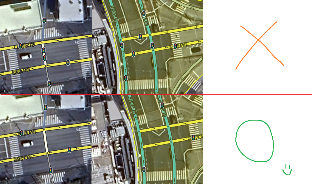 交差点の接点(交差するポイント)に合わせてクリックすると、全方向に信号機 が設置されます。