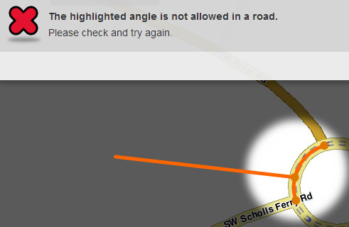 Explanation #1: An area will be highlighted that reflects changes you are trying to make that are outside of your allowed Editable Area. There is a time limit for areas that you have driven. See the Editable Area link for more information.