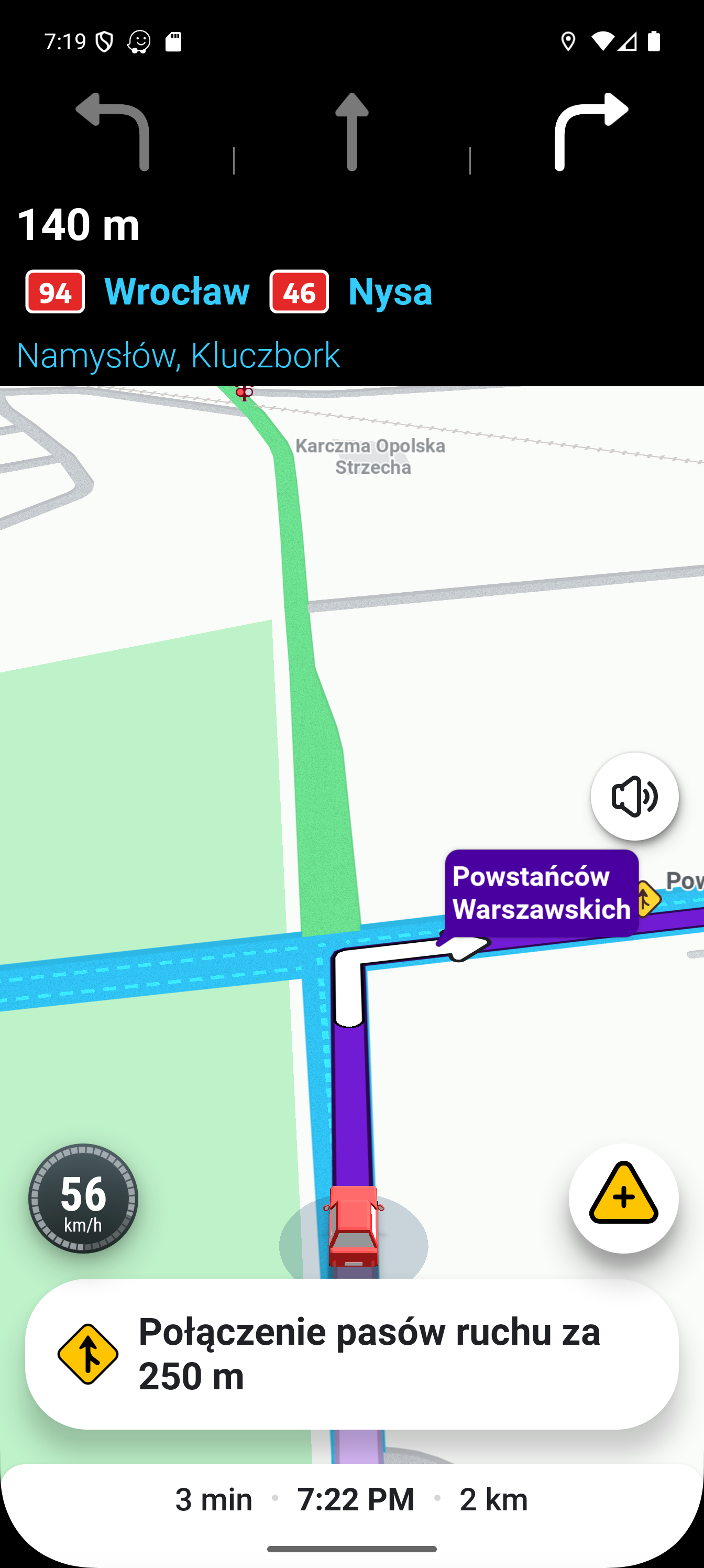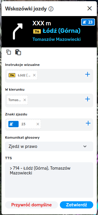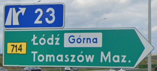 „za XXX metrów zjedź w prawo w kierunku 714 – Łódź (Górna), Tomaszów Mazowiecki”