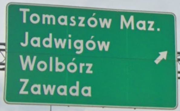 Wzrok kierowcy jest przyciągany do pierwszej nazwy miejscowości - Tomaszów Mazowiecki - dlatego jest wyswietlony dużą czcionką.