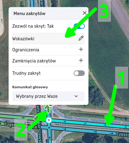 Dlatego zazwyczaj nie konfigurujemy wskazówek dla kierunku „prosto”, ponieważ nie zostaną wyświetlone.