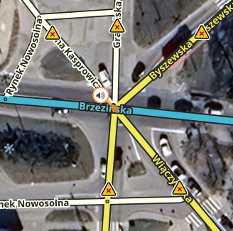 - Grupowanie powiadomień – jeśli kilka zagrożeń znajduje się blisko siebie, generowany jest tylko jeden komunikat. Odległości pomiędzy zagrożeniami są różne w zależności od ich typu.