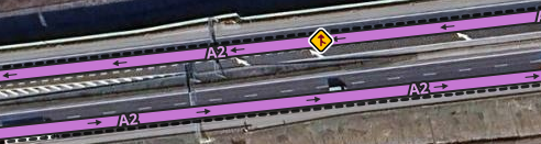 Na Autostradach oraz drogach ekspesowych ikonę ustawiamy na przedostatniej strzałce patrząc od miejsca gdzie zanika pas ruchu.